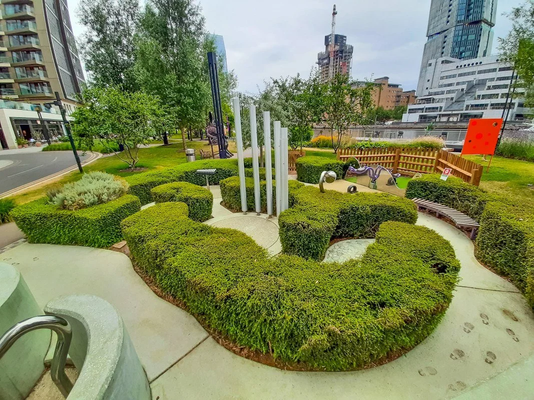 Park Jubilee to urocza, zielona oaza w centrum Canary Wharf, położona tuż za wejściem do stacji metra.