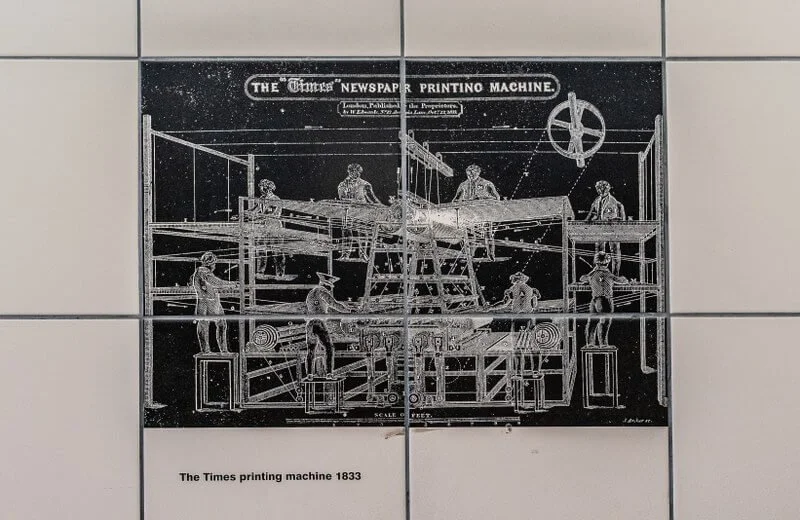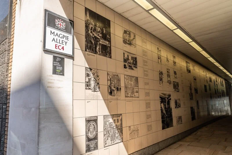 On Magpie Alley (a short alley located to the south of Fleet Street), you can find tiles describing the history of the printing in London.
