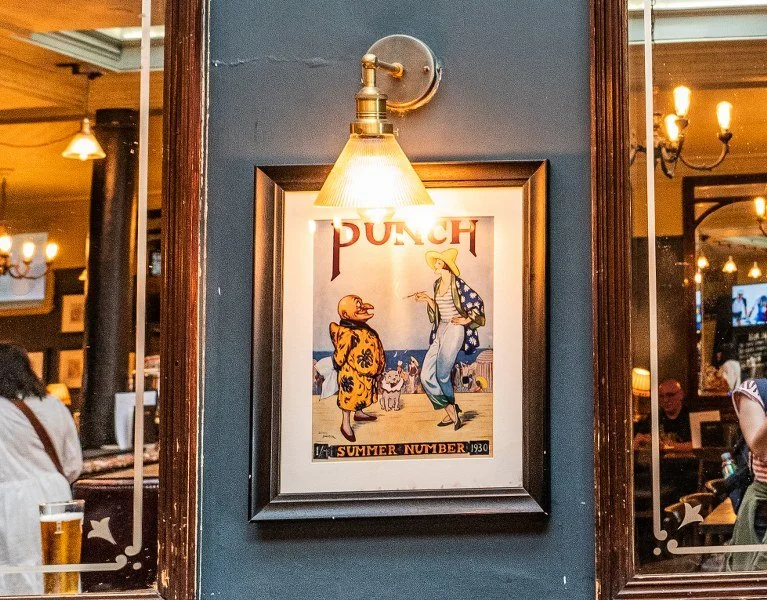 The pub honors its connection to the magazine (it was a drinking hole for its employees) by displaying various cartoons that were once published in Punch, providing a charming glimpse into its satirical past.