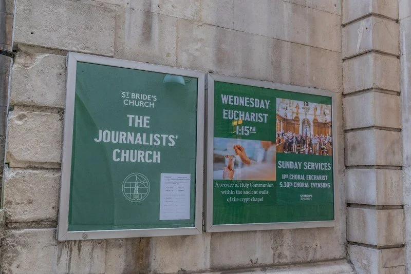 St Bride's Church, located on the south side of Fleet Street, near Ludgate Circus, offers a mix of interesting stories.