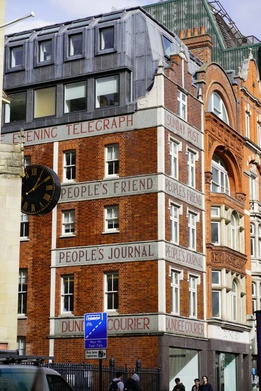 On the east elevation of the building at No. 62 Fleet Street, the former location of Carlile's printing house, you can find a giant sundial displaying the names of several newspapers that no longer exist: The Republican, Pall Mall Gazette, The Morning Post, News Chronicle, and The Daily Herald.