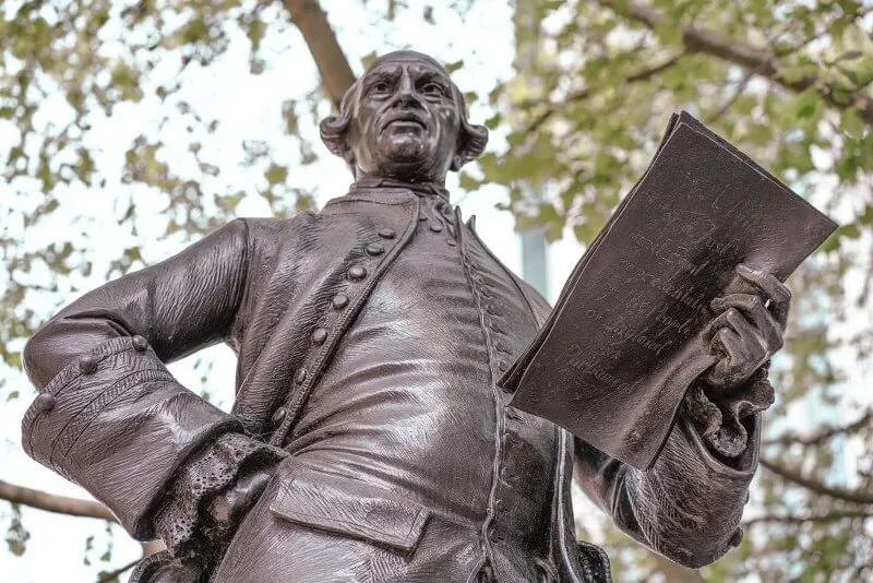 You can find his confidently posed statue on Fetter Lane, a short walk from Fleet Street.