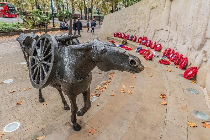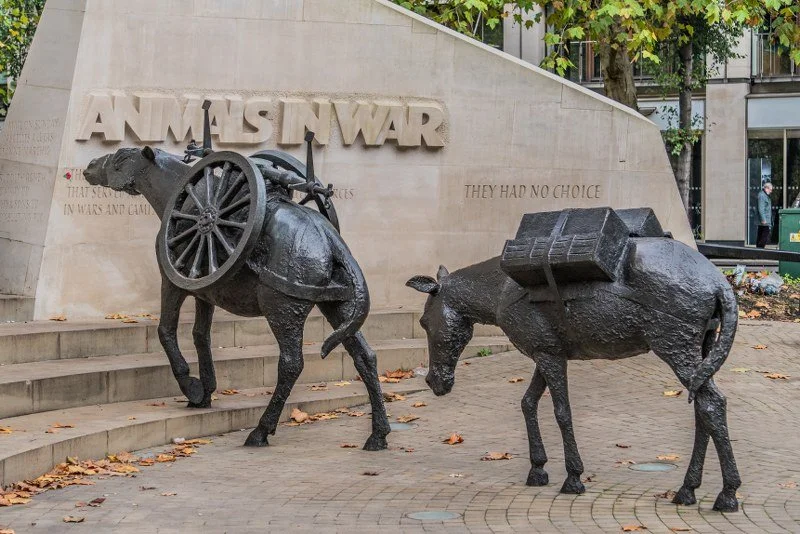 Located on Park Lane, near Hyde Park, with Marble Arch being the closest tube station, the Animals in War Memorial is a moving tribute to the millions of animals that have served, suffered, and died in various wars.